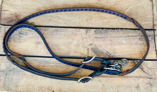Dustybutts Harness Leather Buckstitch And Bloodknot Barrel Racing Reins - Turquoise