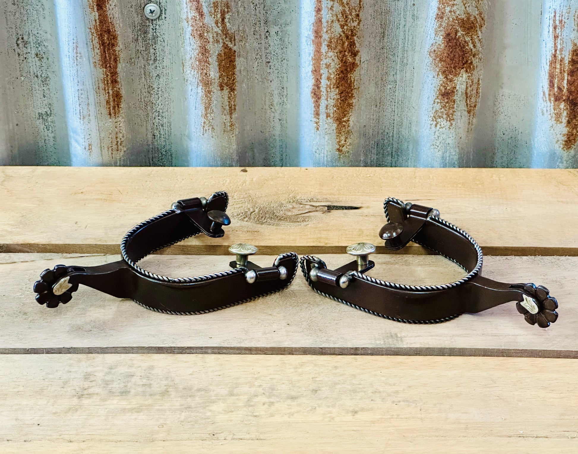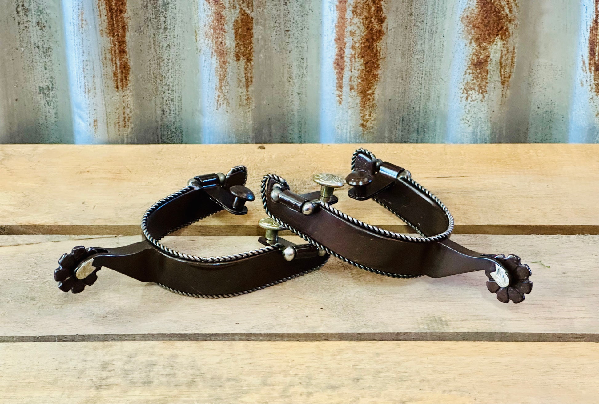 Brown Steel Spur With Twisted Border Design
