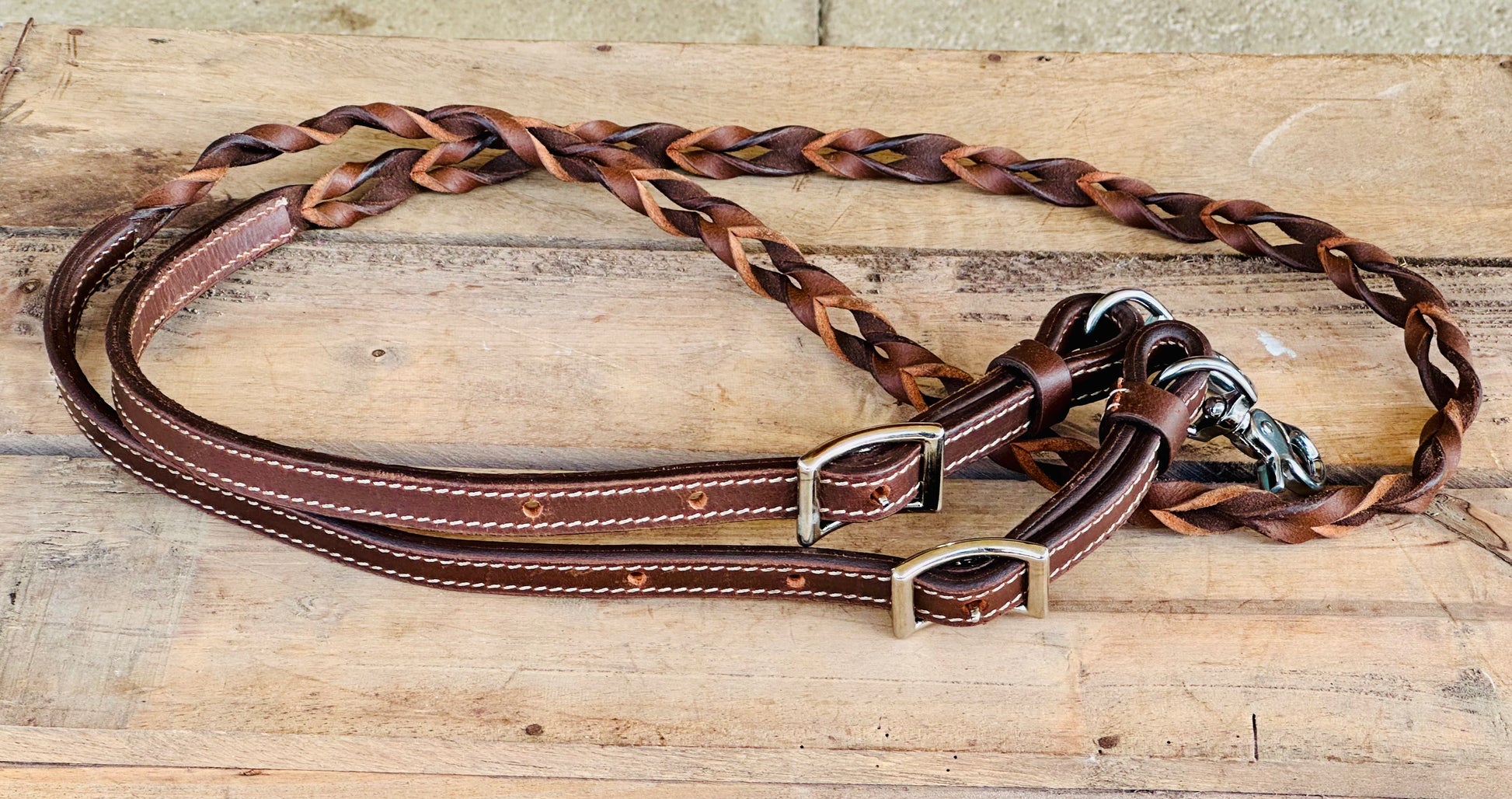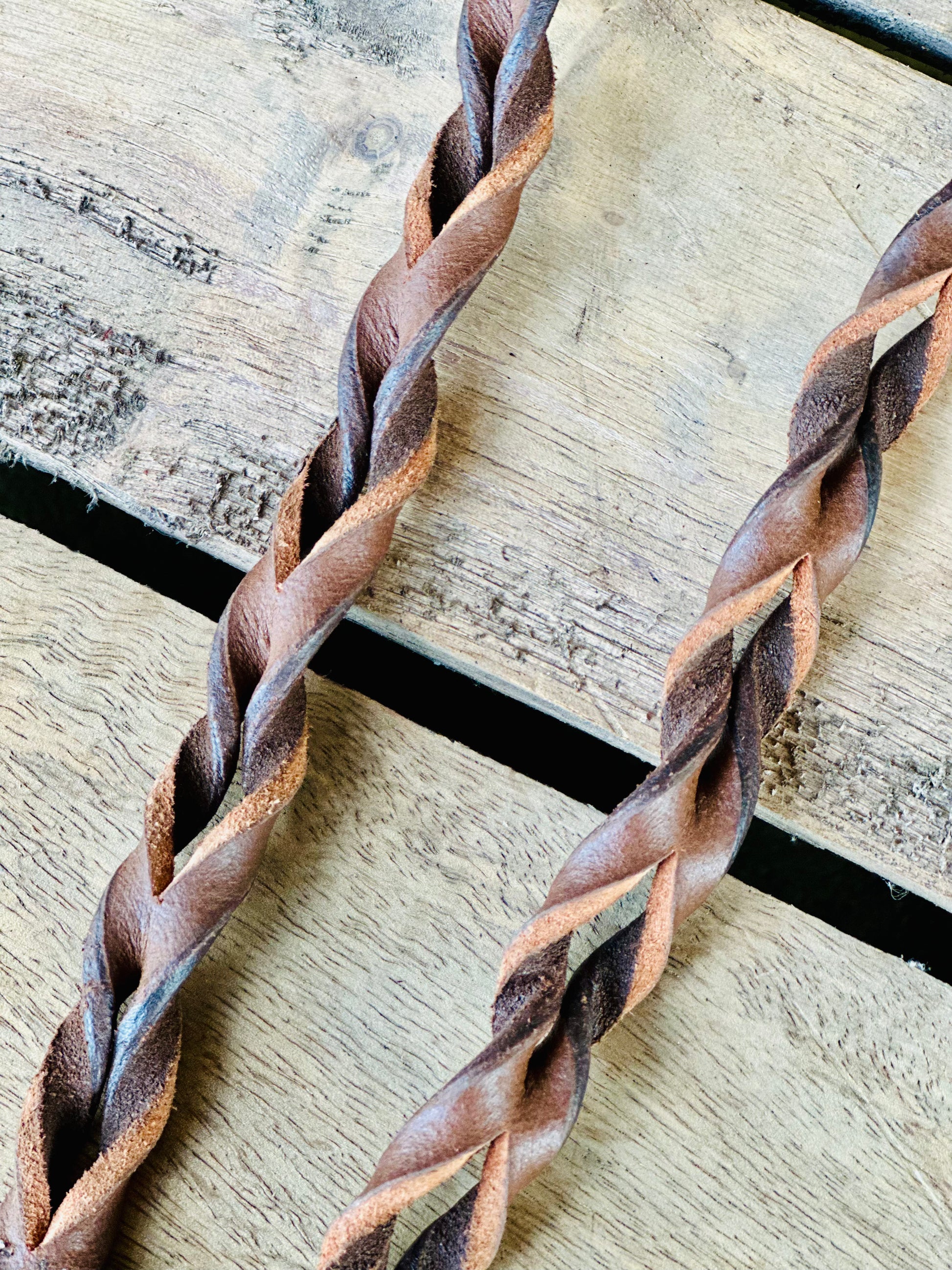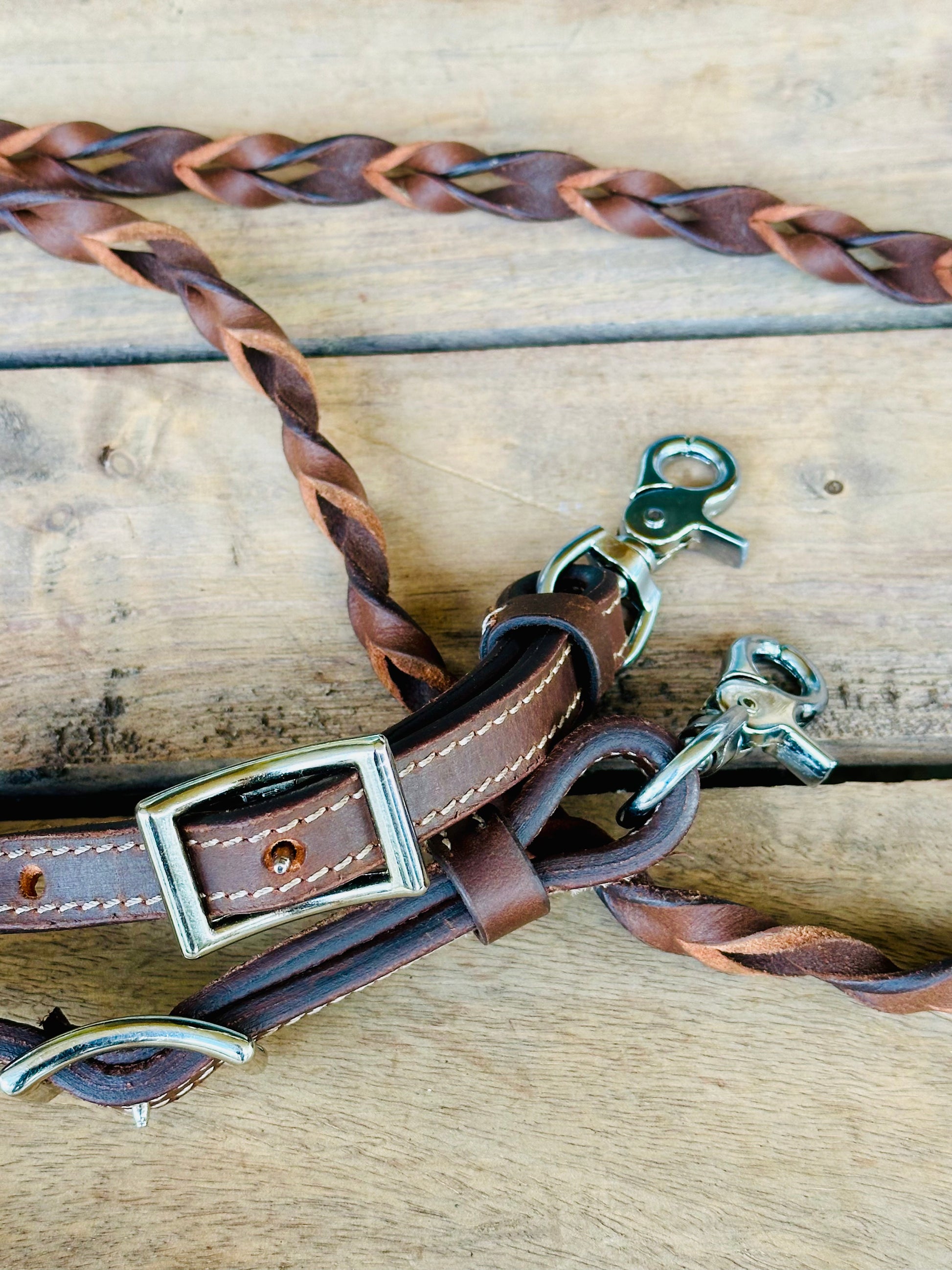 Dustybutts Harness Leather Twisted Bloodknot Barrel / Roping Reins