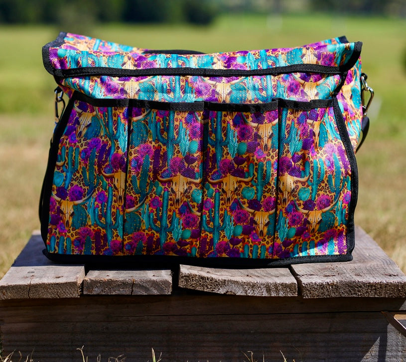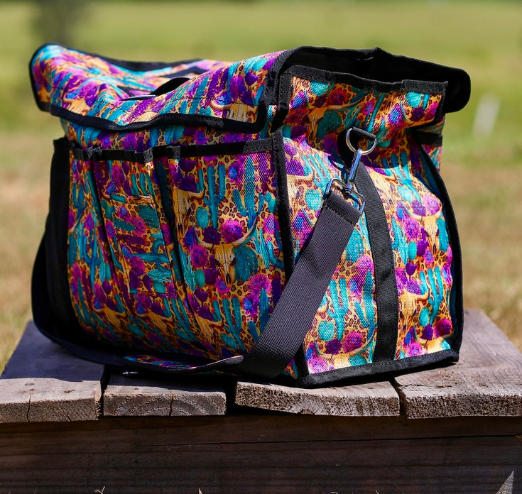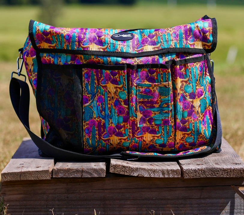 Featuring a large open-center compartment, the Dustybutts Haul All Bag offers plenty of space for boots, helmets, bells, brushes, and more. It includes one small external pocket plus eight side external pockets for easy access and organisation, along with four internal elastic holders to secure smaller items. A fully lined interior and Velcro top cover help protect your gear, while the adjustable and removable shoulder strap provides comfortable, versatile carrying options.
