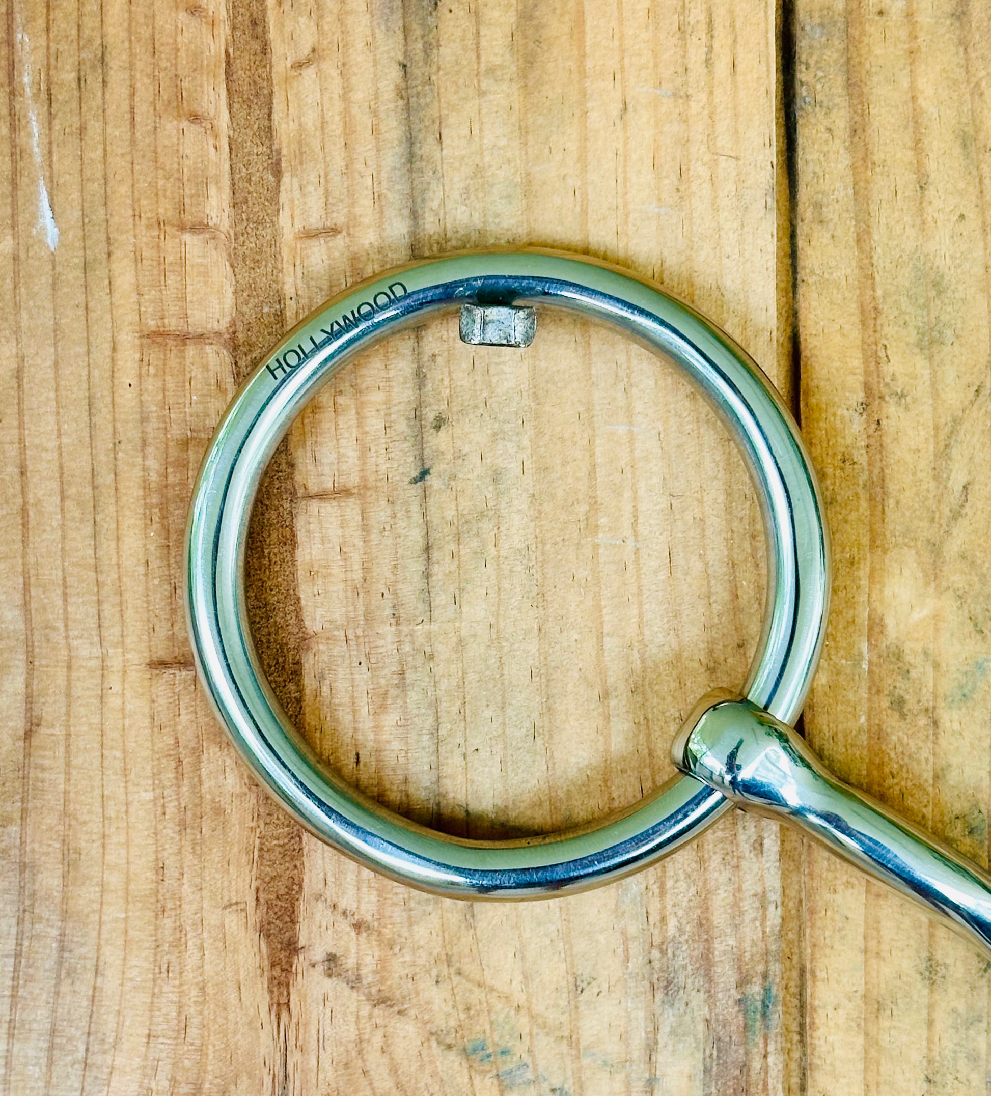 The “Hollywood” weighted loose-ring bit works by applying pressure to the tongue, bars, and corners of the mouth. It’s designed to suit all disciplines and horses of any level.