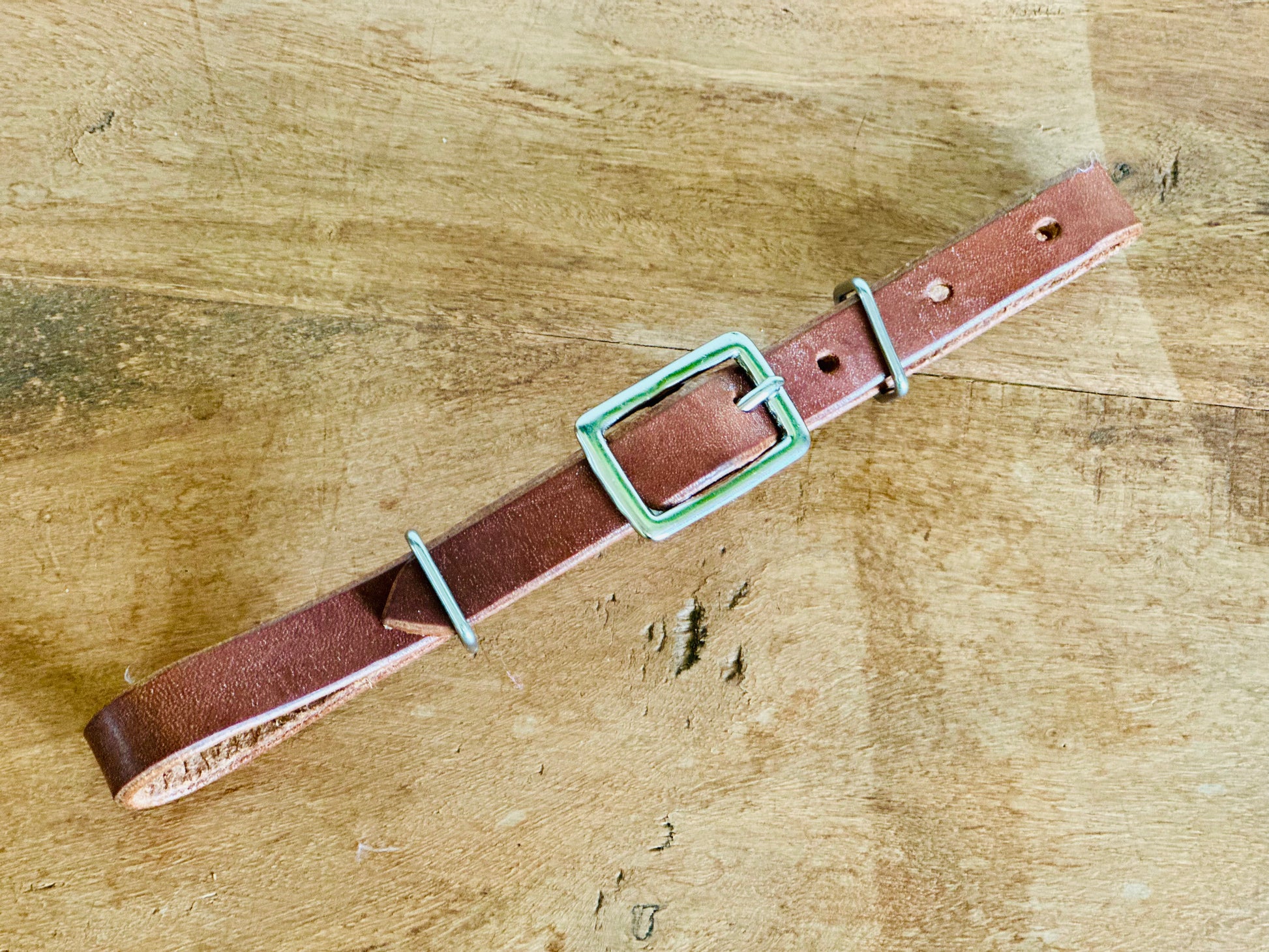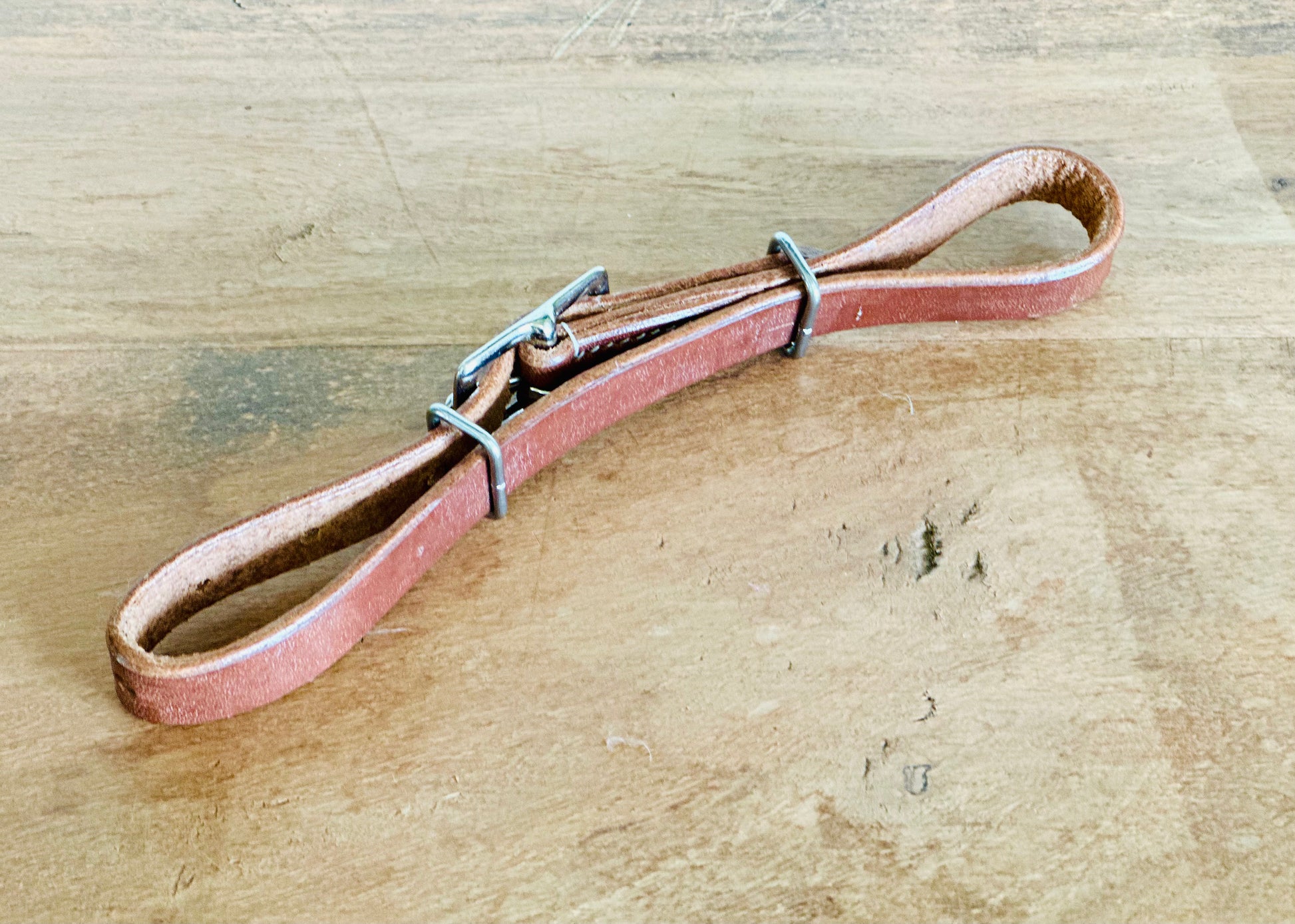 Harness leather fully adjustable all leather curb strap. Curb strap has 5 pre-punched holes for plenty of adjustment.